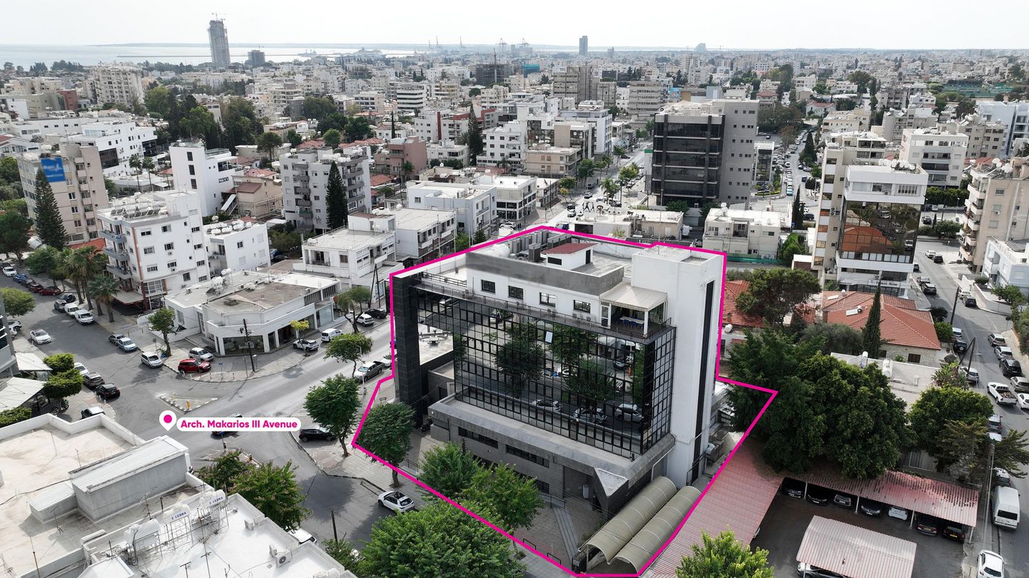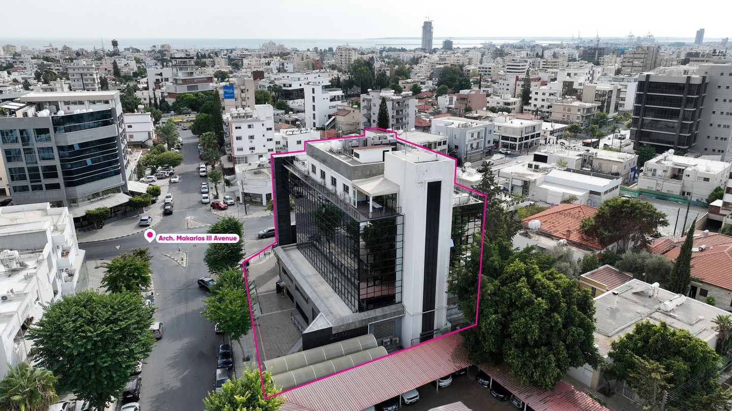 A commercial building, primely located on the corner of Arch.Makarios Avenue and Ioannou Polemi street, in Apostoloi Petrou & Pavlou parish of Limassol Municipality. The immediate area is characterized by high-rise buildings, with shops on the ground floor and offices/apartments on the upper floors. The property is partially rented to a major local banking institution, covering part of the basement, whole ground floor and mezzanine.