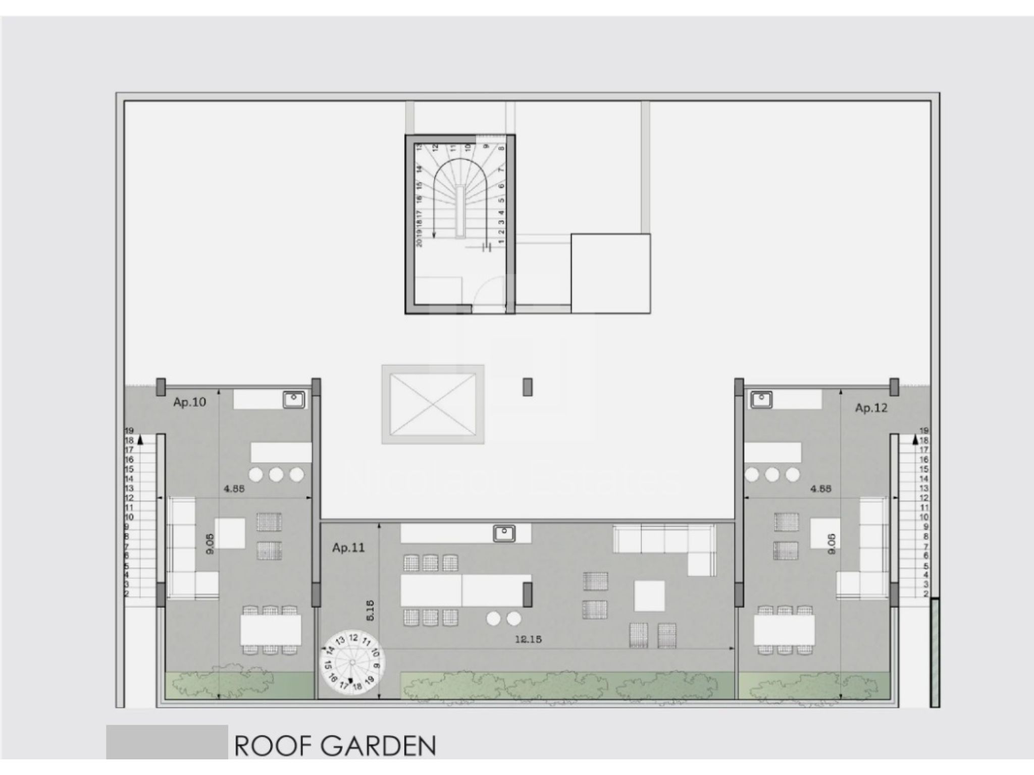 - The top-floor apartments feature private roof gardens