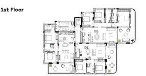 Apt. no. 103 is on the first floor and it comes with 3 bedrooms, 2 bathrooms, 128sq.m! of internal covered areas, 32sq.m covered veranda, 2 covered parking spaces and a massive 8sq.m of private storage. Price is 790000 euro plus VAT