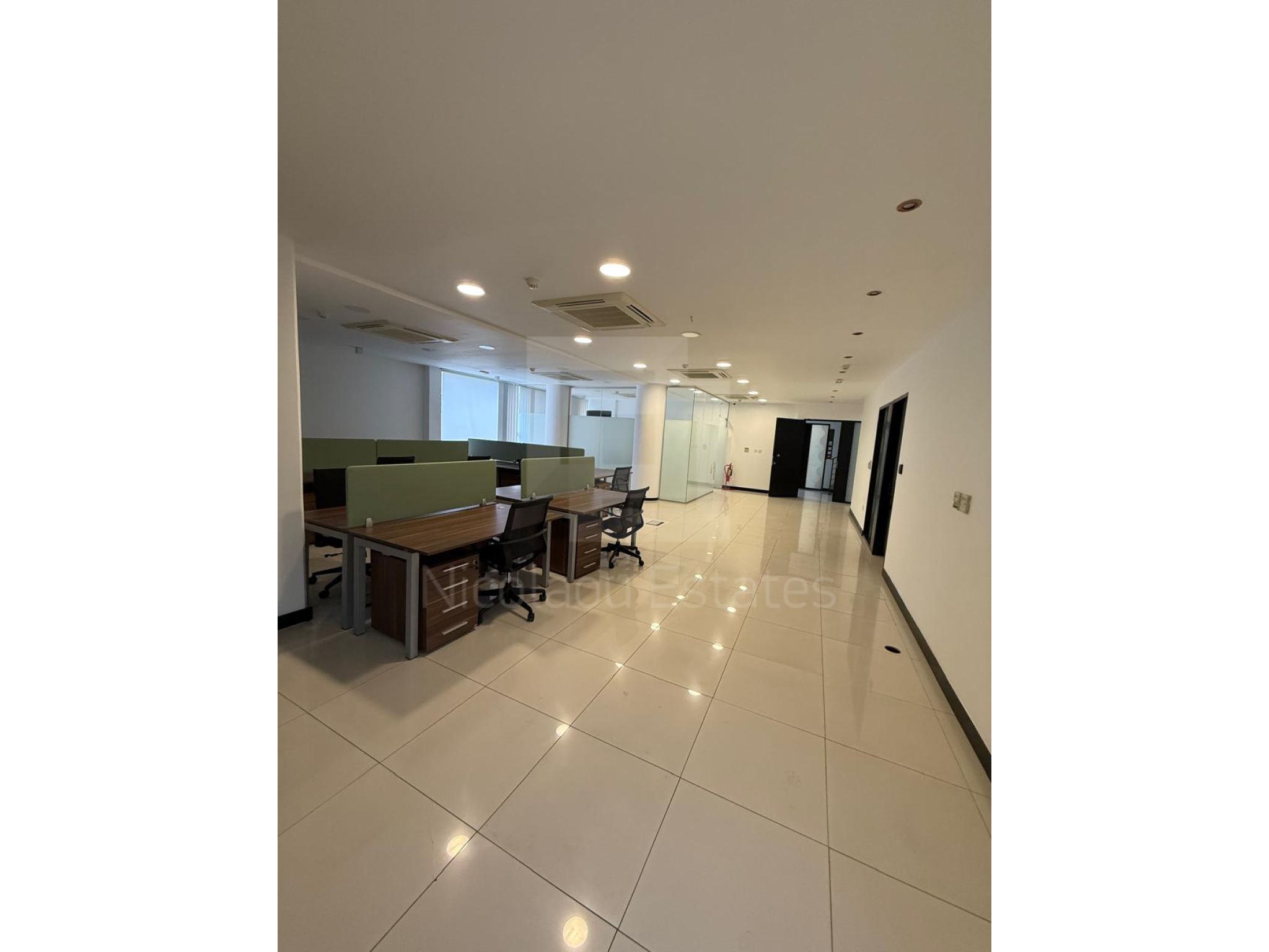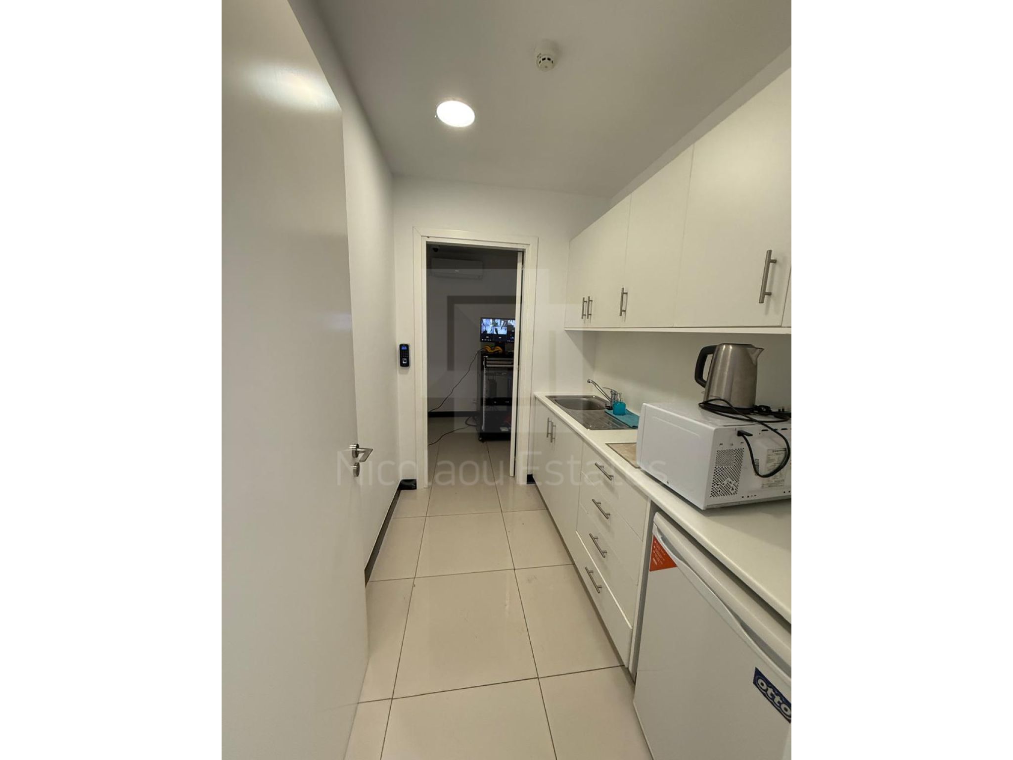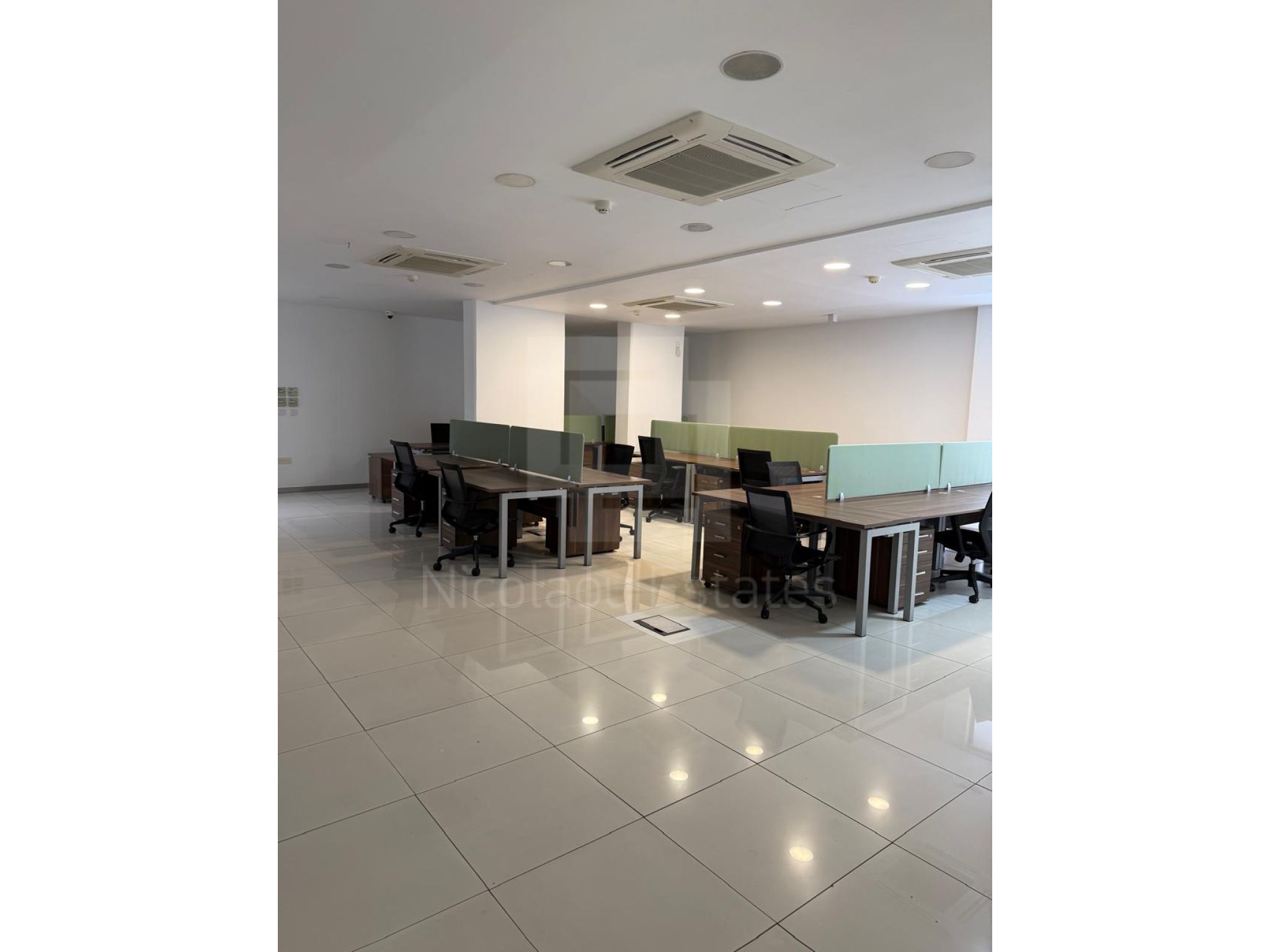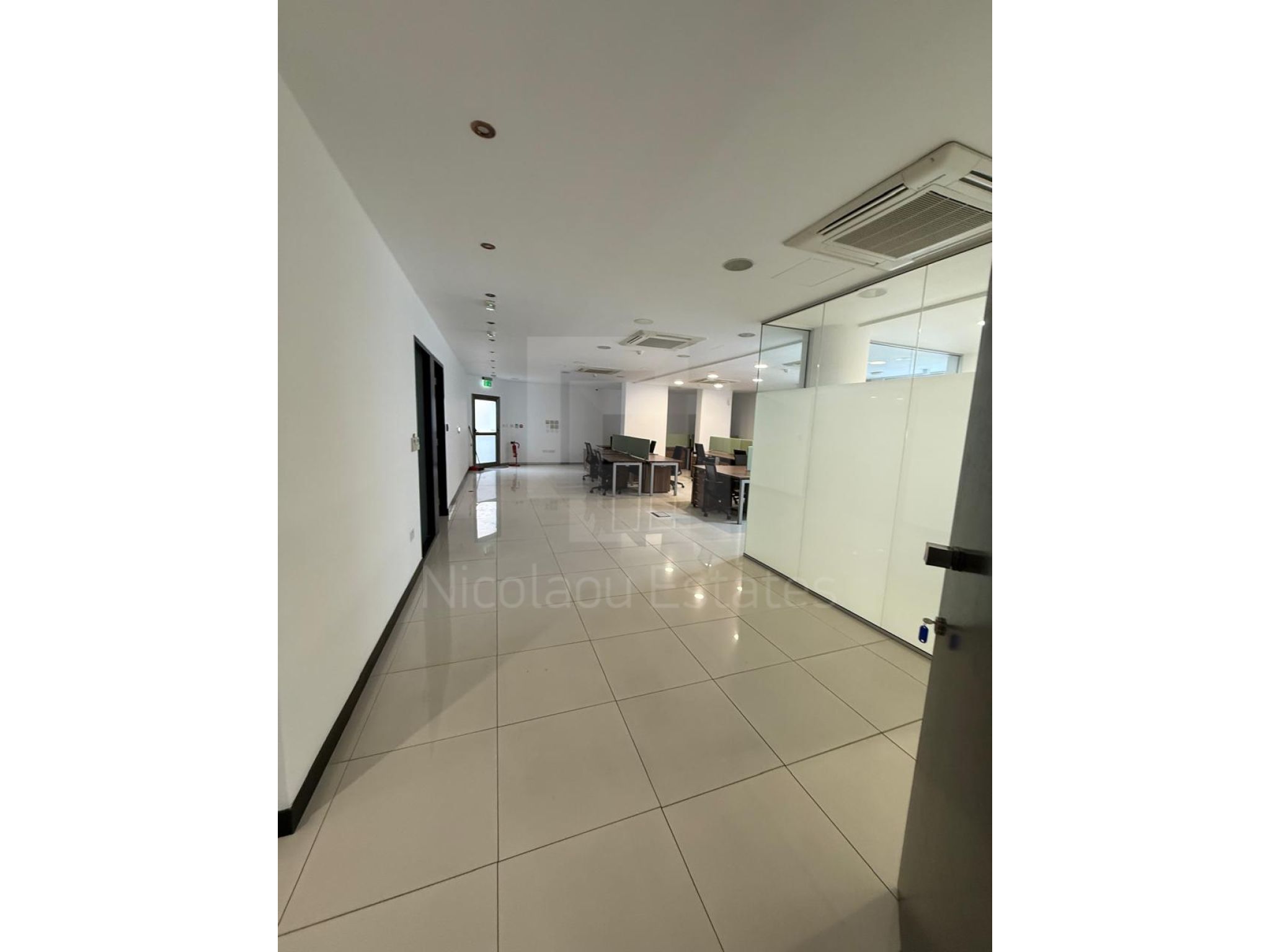 The floors are raised floors covered with marble tiles. The windows are double glazed with aluminium profiles and the internal doors are made of wood. The building is fully air conditioned (VRV and split unit appliances). The building is fully protected by security system with cctv cameras, automation systems on lights and accessing the building (smart card pass) and it is served by an elevator and staircase. All areas are protected by a fire prevention and suspension system. The ceiling is covered with decorative plaster boards. The building is both externally and internally in a very good maintenance and repairing condition.