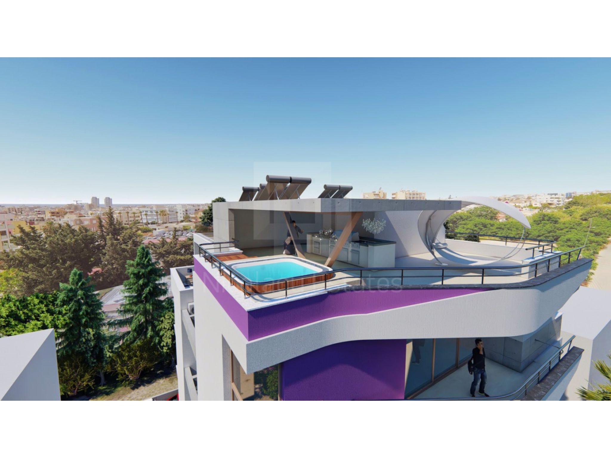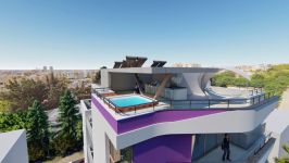 The top-floor residence boasts a private roof garden and swimming pool.
