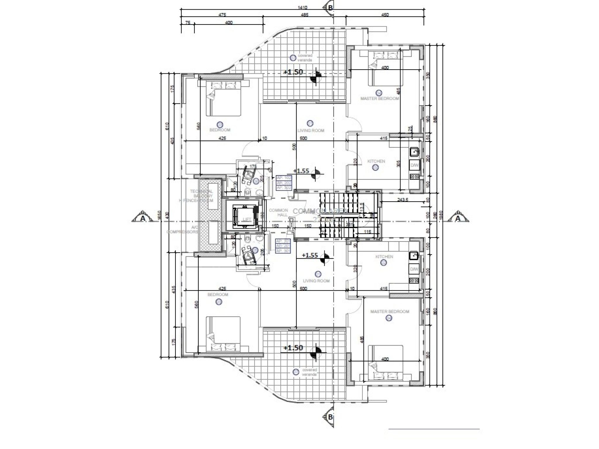 Provisions are in place for air-conditioning units and electric heating radiators.